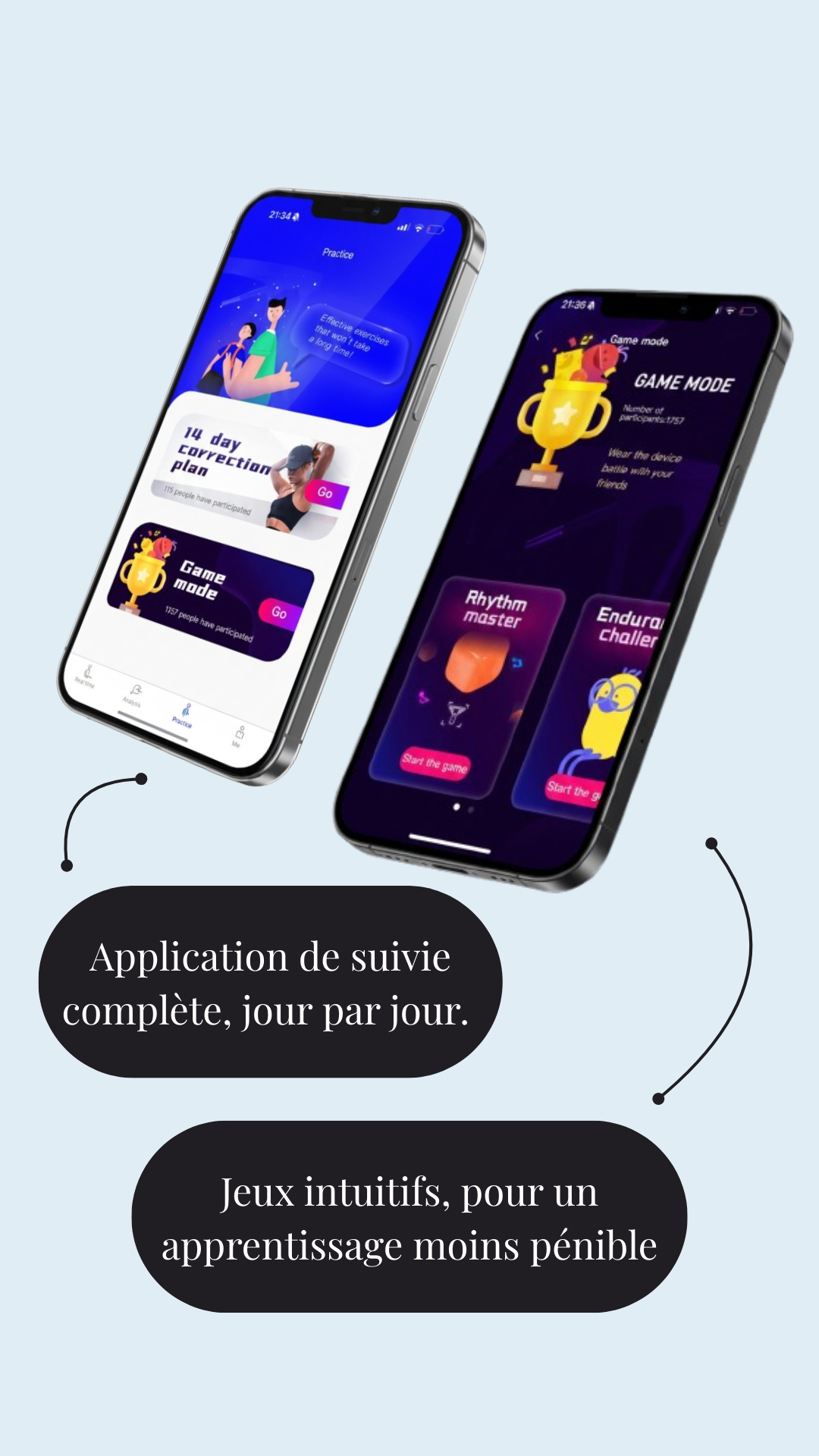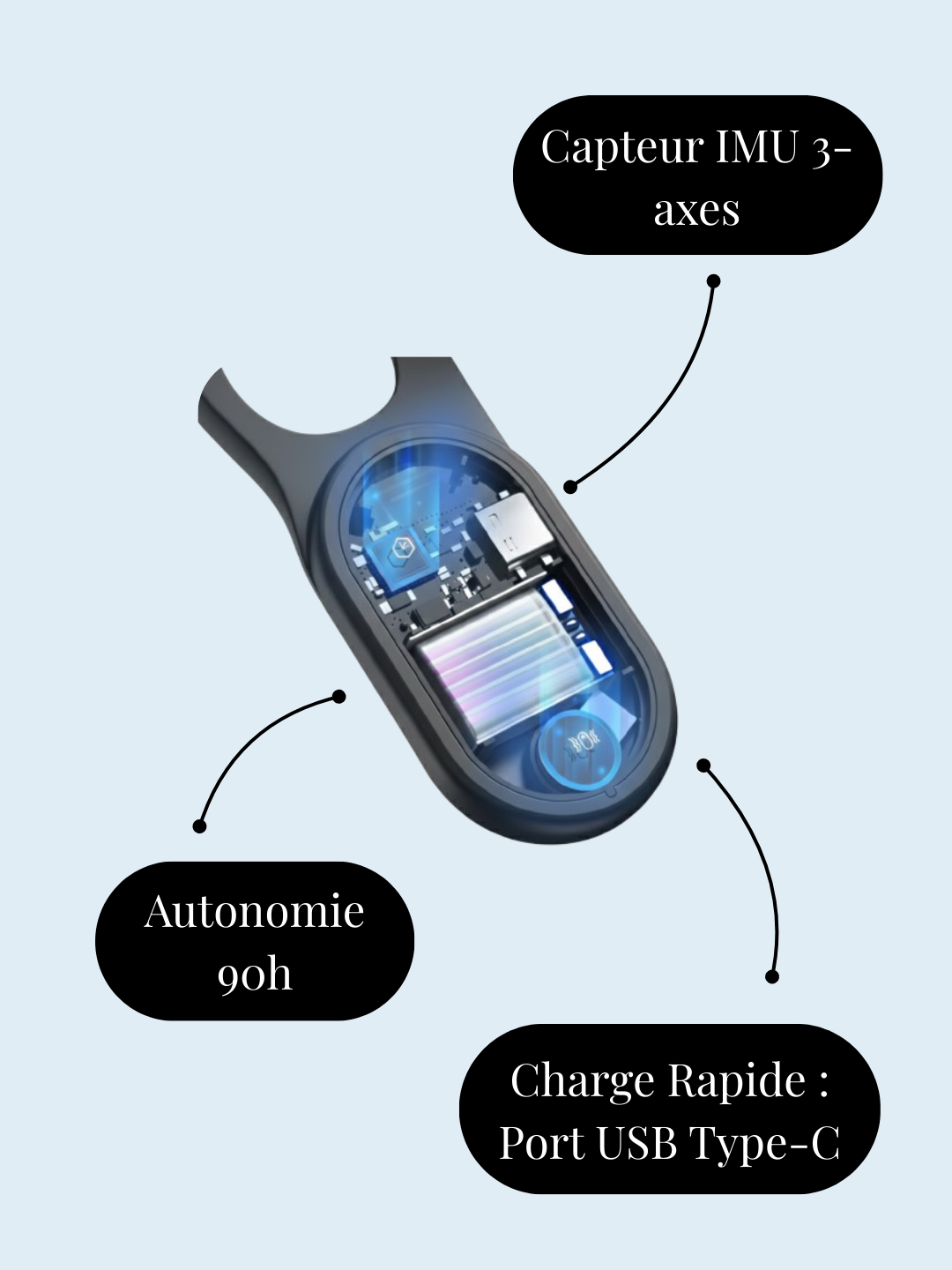 Le produit se porte autour du cou. Il analyse en temps réel l’angle de votre colonne grâce à un capteur interne. Quand vous vous affaissez ou vous penchez trop en avant, il active une vibration douce pour vous rappeler de vous redresser. Vous pouvez aussi le connecter à une application mobile via Bluetooth pour suivre l’historique, ajuster l’angle déclencheur ou personnaliser les rappels.